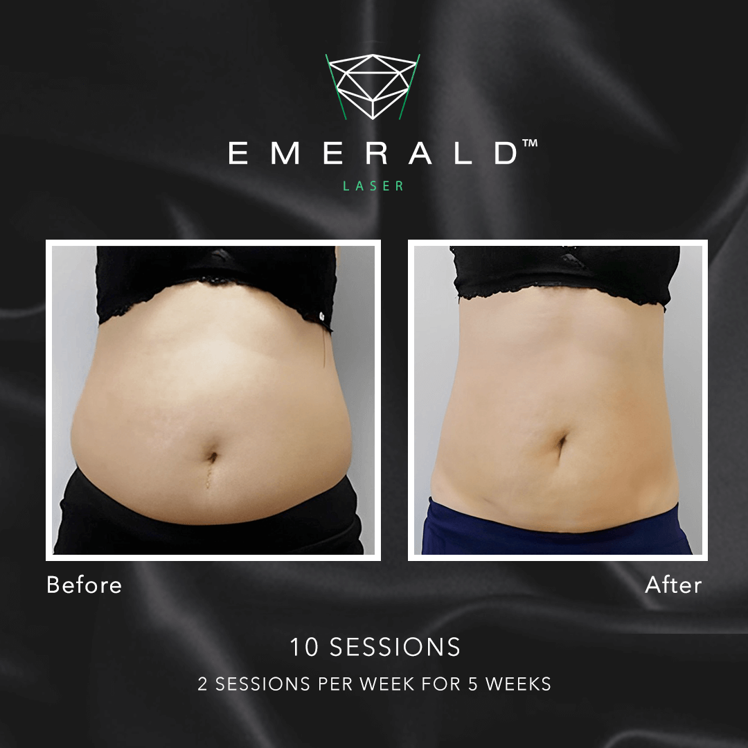 Emerald is a non-invasive medical procedure that involves targeting fat cells beneath the skin. Consequently, it does not require incisions, injections, or even human touch. Unlike liposuction, there is no need to wait for your incisions to heal because there are no incisions.