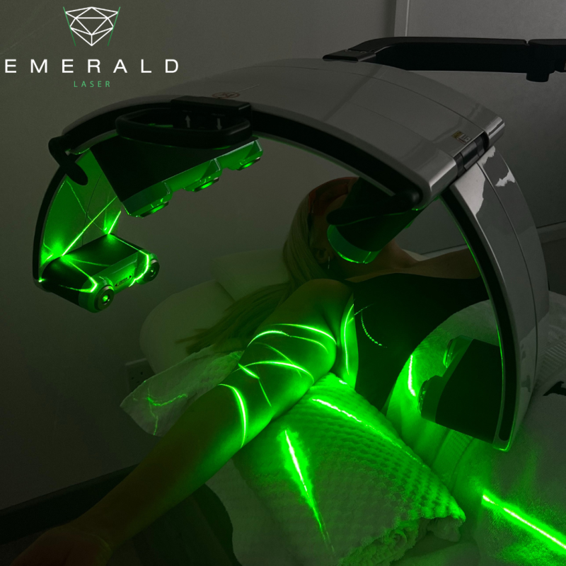 The Emerald laser is a no-contact, non-invasive and non-thermal fat loss laser that is clinically proven to effectively reduce unwanted fat and cellulite and heal your body from the inside-out. It works as a natural alternative for fat loss by using non-thermal low level lasers to create a temporary pore in the fat cells, allowing the fatty liquids to seep out of the cell and be naturally flushed through your lymphatic system.